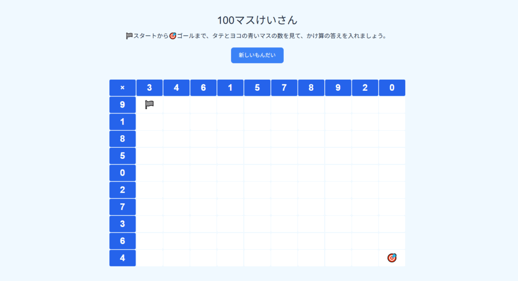 左に表示された数字を右から選択する神経衰弱チックな数合わせ