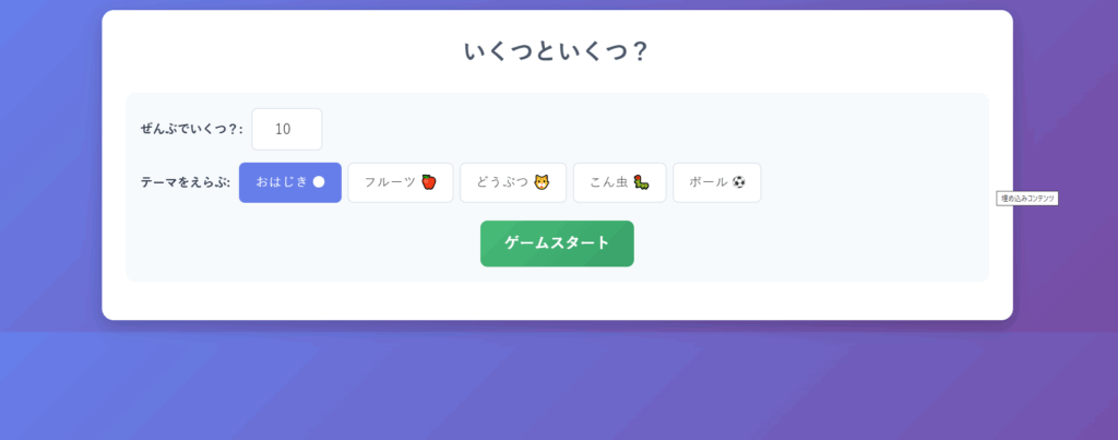 左に表示されたくだものを右から選択する神経衰弱チックな数合わせ